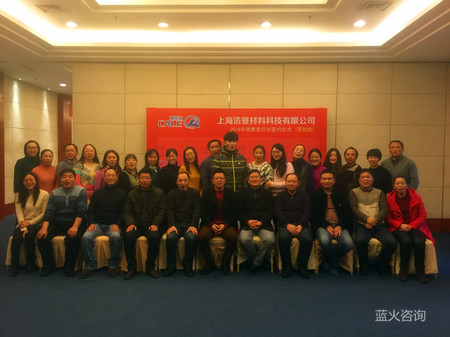 1月8日,上海浩登材料科技有限公司销售团队培训暨2016年销售责任状签约仪式在盐城悦达大酒店众悦厅隆重举行,我公司销售讲师陈老师为上海浩登50多位各片区负责人进行了培训,培训主题为《以绩效为导向的销售团队打造》。